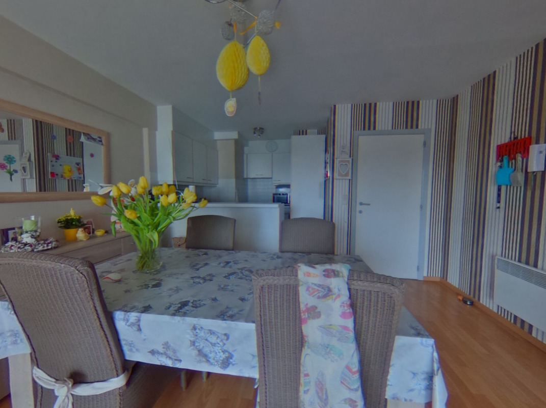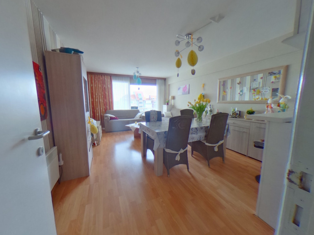 2 slaapkamerappartement in hartje Middelkerke op de tweede verdieping. Aangename woonkamer met open keuken. Aparte berging, apart toilet en badkamer met ligbad en lavabo.