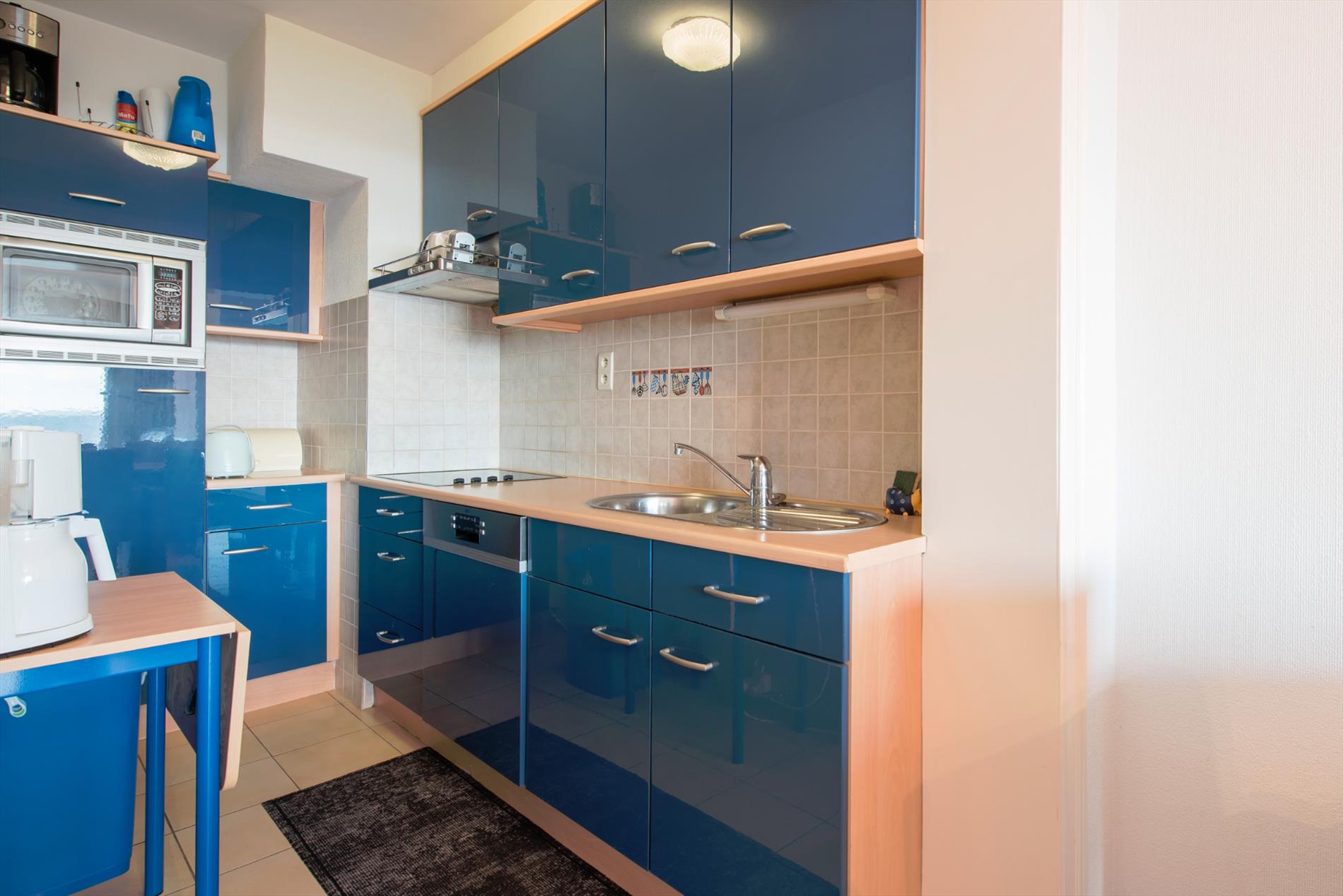 Appartement gelegen op de Zeedijk van Middelkerke met 2 slaapkamers. Gezellige woonkamer met prachtig zeezicht, open keuken met alle comfort. Badkamer ligbad en lavabo, apart toilet. 2 slaapkamers waarvan 1 met dubbel bed en 2 enkele bedden. Zeer grote kelderruimte (23 m²) met wasmachine/droogkast en fietsenberging. Ruime koer. EEN AANRADER!