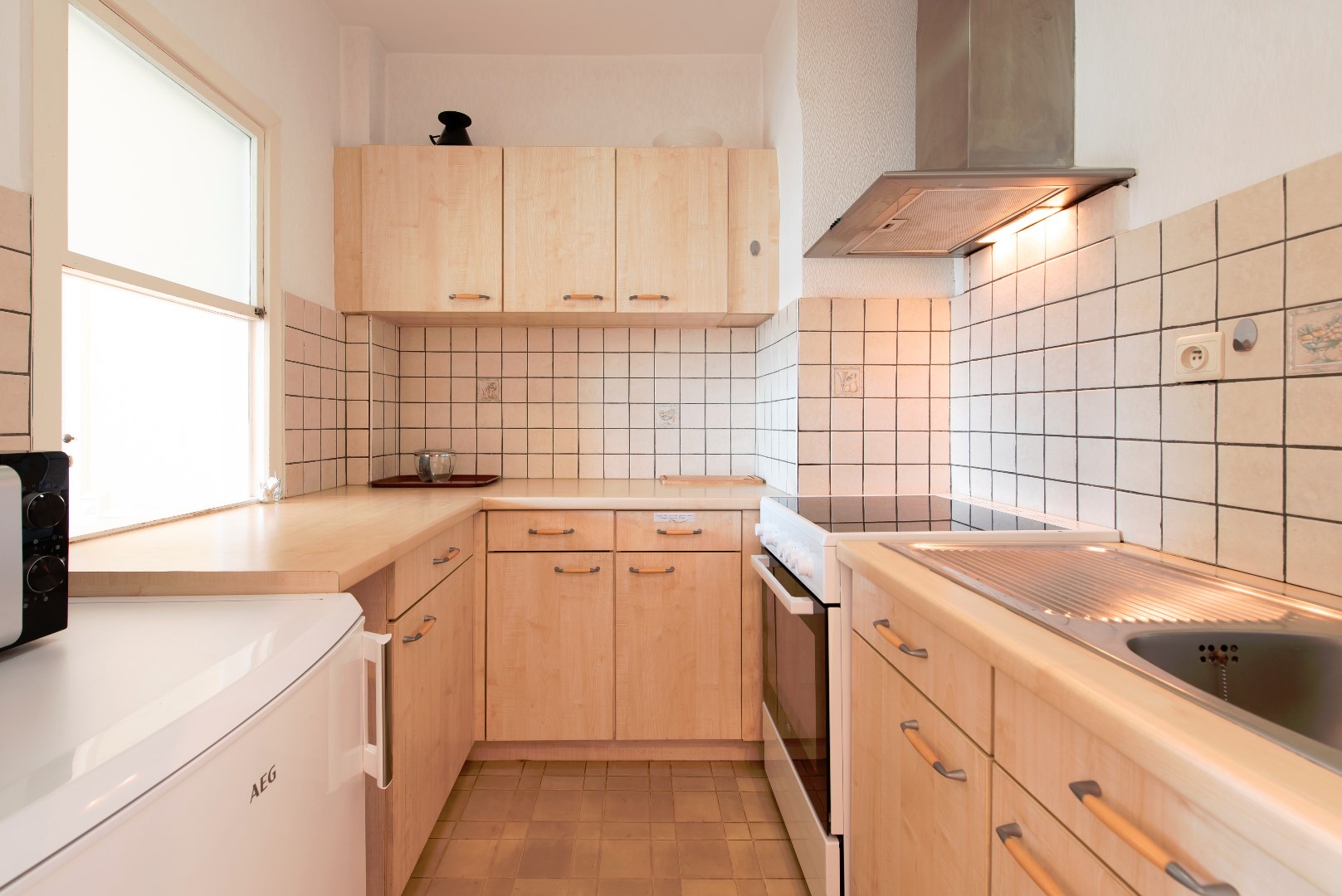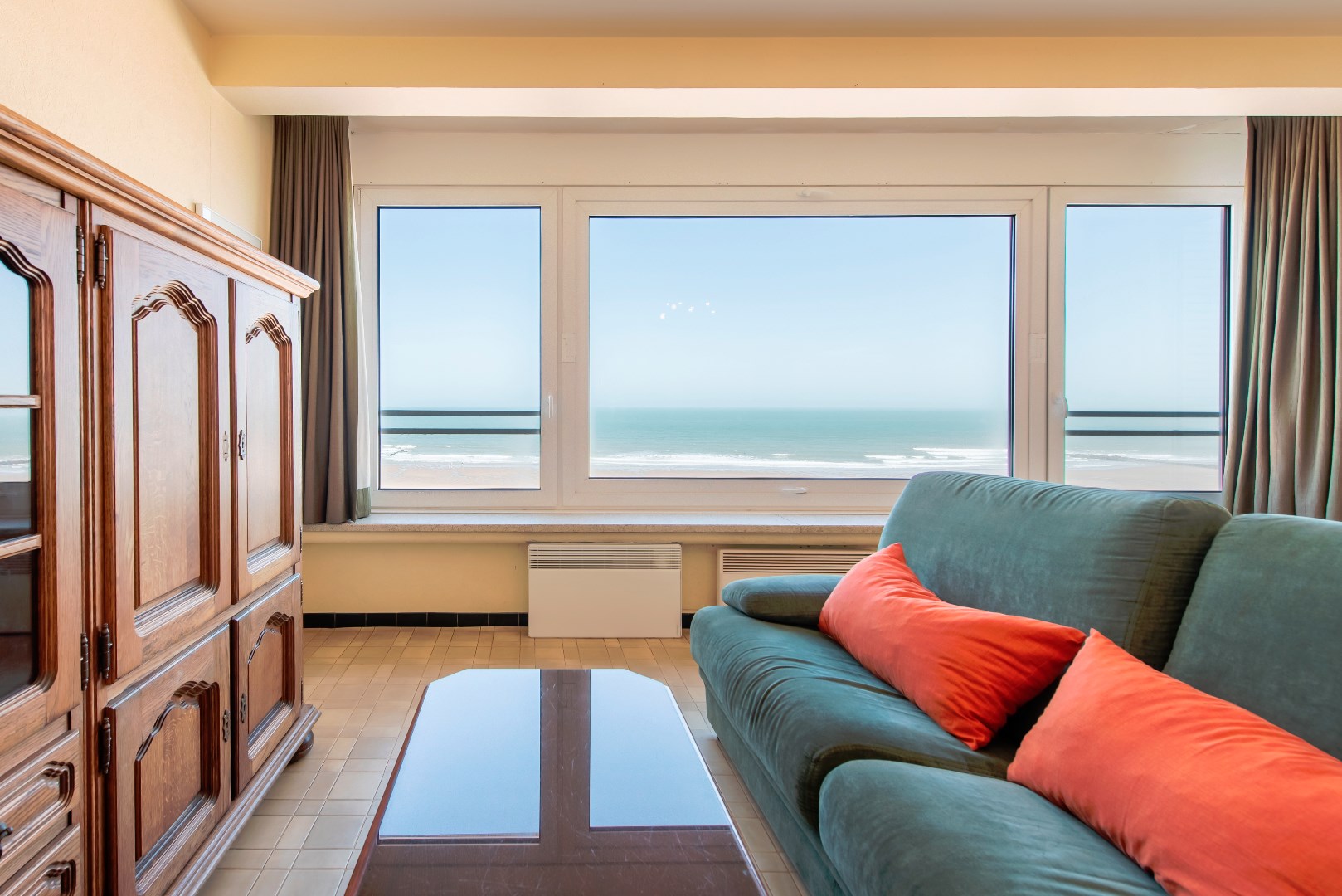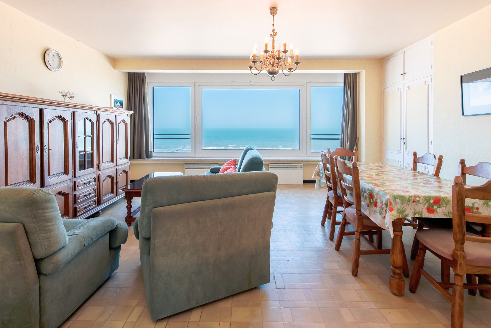 Het interieur van het appartement is modern en licht, met grote ramen die zorgen voor veel natuurlijk licht. De keuken is volledig uitgerust met alle nodige apparatuur en er is een ruime woonkamer met voldoende plaats voor een eethoek en een comfortabele zitruimte.