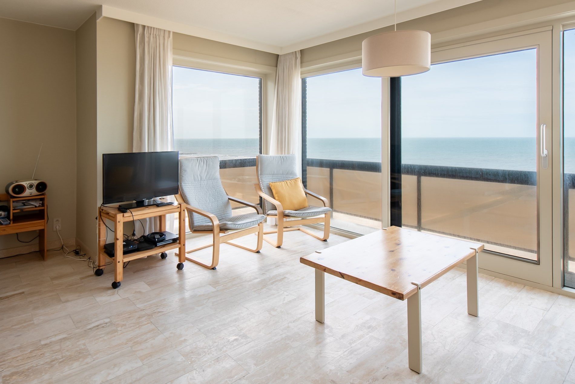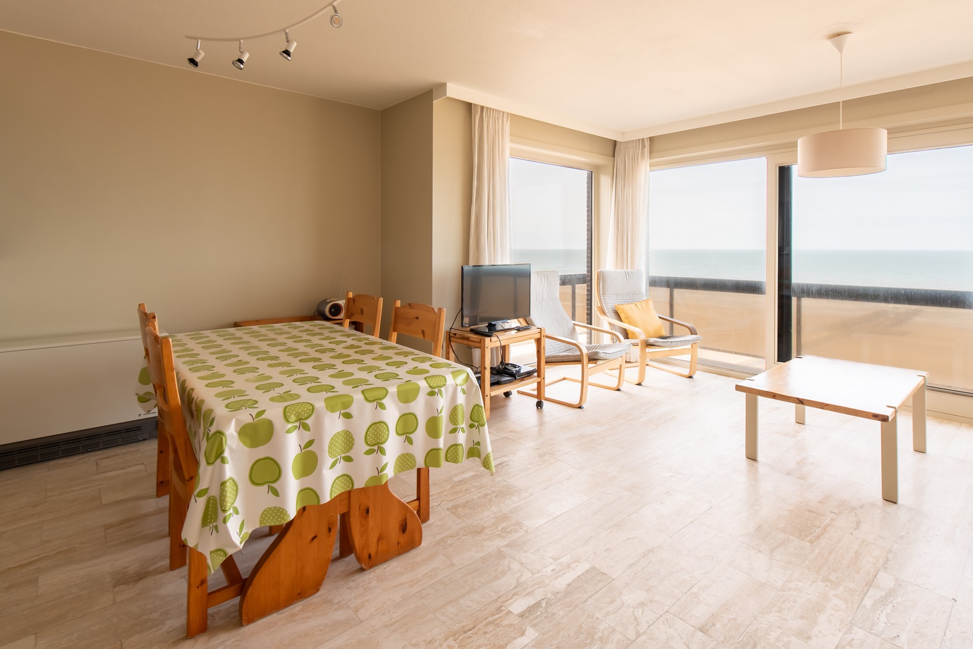 Angenehme Wohnung mit 2 Schlafzimmern am Zeedijk von Middelkerke. Offene Küche mit nötigem Komfort, Badezimmer mit Badewanne, separates WC. 1 Schlafzimmer mit Doppelbett und 1 Schlafzimmer mit 2 Einzelbetten.