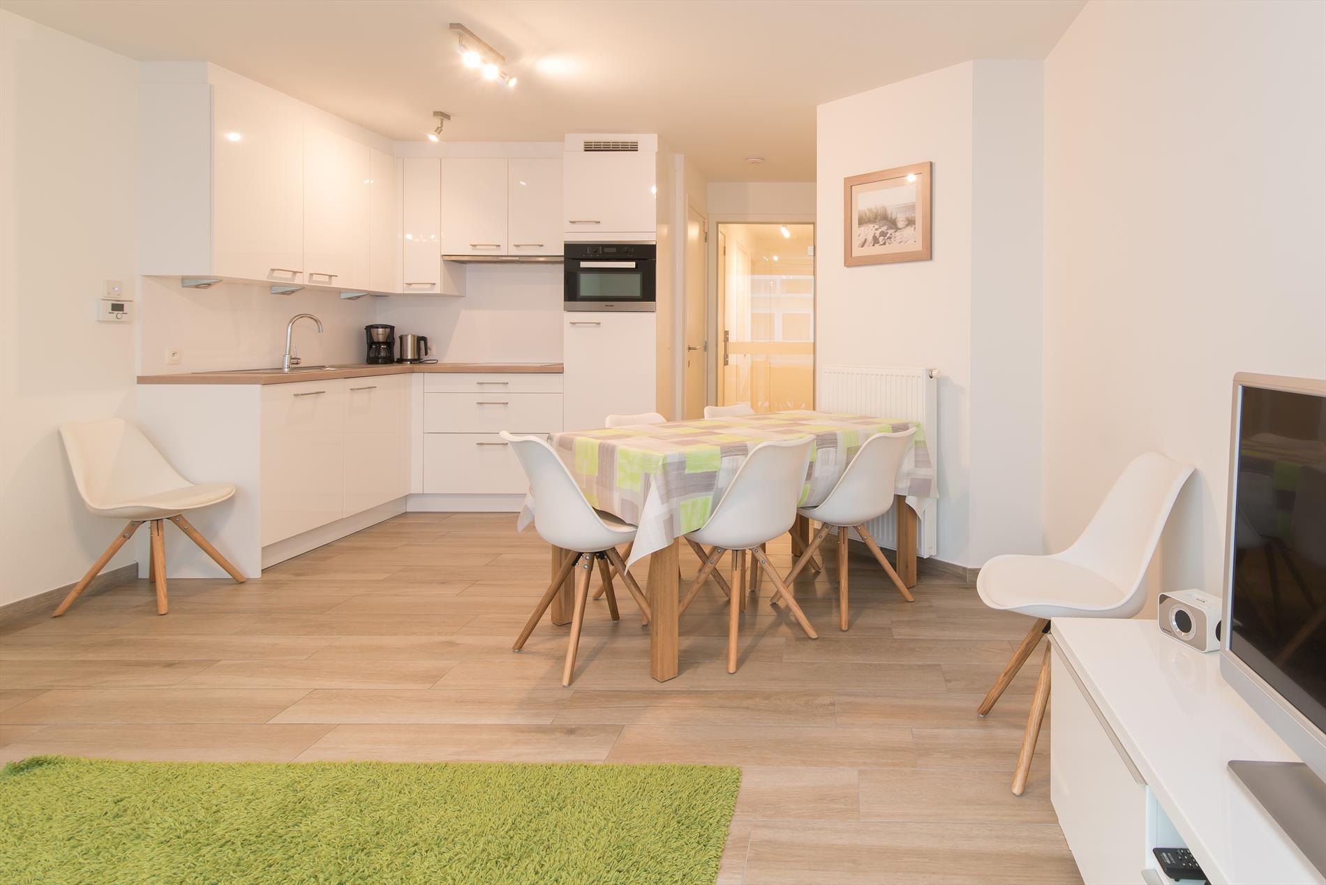 Appartement magnifiquement fini avec 2 chambres, situé au premier étage, au coeur de Middelkerke. Tous commerces à proximité. Cuisine ouverte avec tout le confort. WC séparé. Salle de bain avec douche à l’italienne. Terrasse spacieuse à l’avant. Une chambre avec lit double et une chambre avec un lit simple et un lit superposé. Equipé d’internet et de télévision numérique. Fortement recommandé !