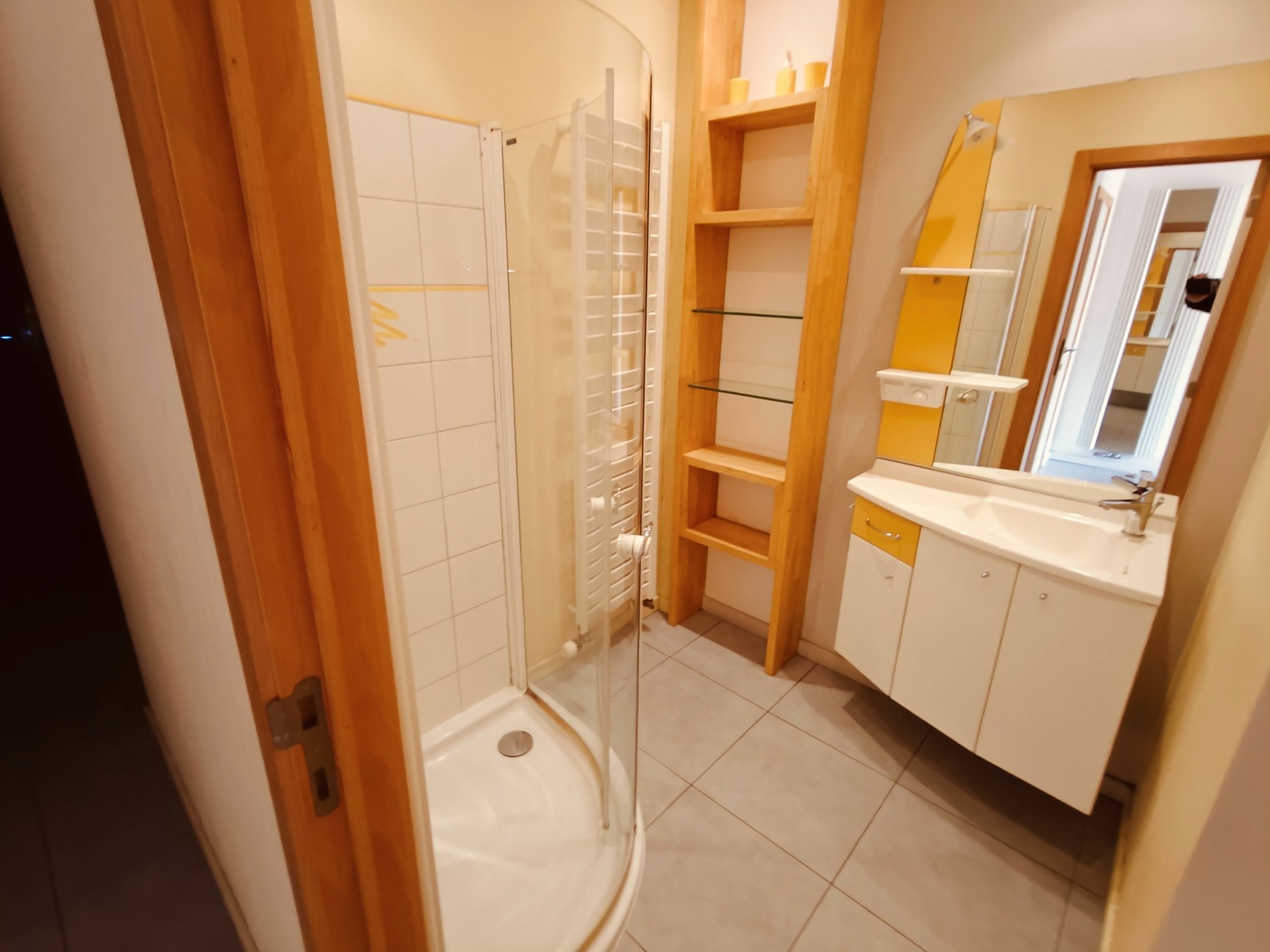 moderne avec une cuisine ouverte, luxueuse. Salle de bains moderne avec douche. Terrasse ensoleillée