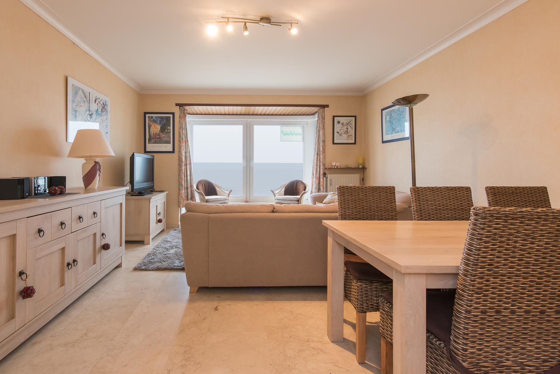 Appartement digue de mer très central tout près du Casino de Middelkerke. Living intime et pratique avec une vue splendide sur mer. Cuisine séparée avec tout confort. Terrasse à sécher à l'arrière. L'appartement est situé au troisième étage.