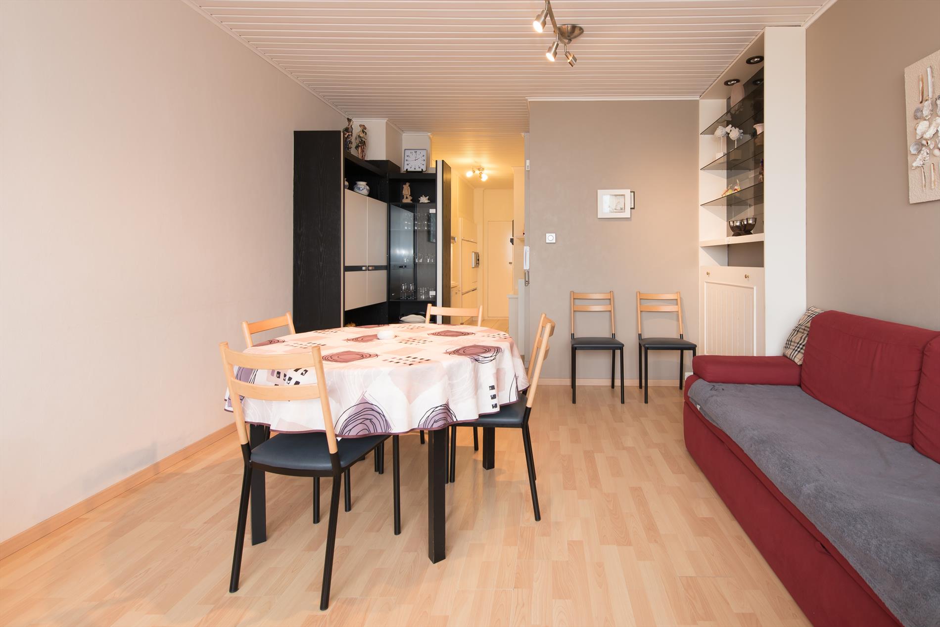 Appartement en digue confortablement meublé situé au rez-de-chaussée à proximité du Casino de Middelkerke. Salon confortable et douillet avec une belle vue sur la digue. Cuisine tout confort et 2 chambres spacieuses. Salle de bain avec douche.Veuillez noter que l'accès à la deuxième chambre n'est possible que via la première chambre.