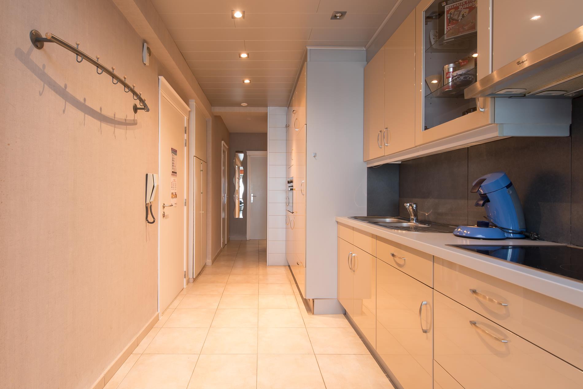 achteraan. Het appartement is gelegen op het achtste verdiep. Let op, er bevindt zich geen vriesvakje in de koelkast.