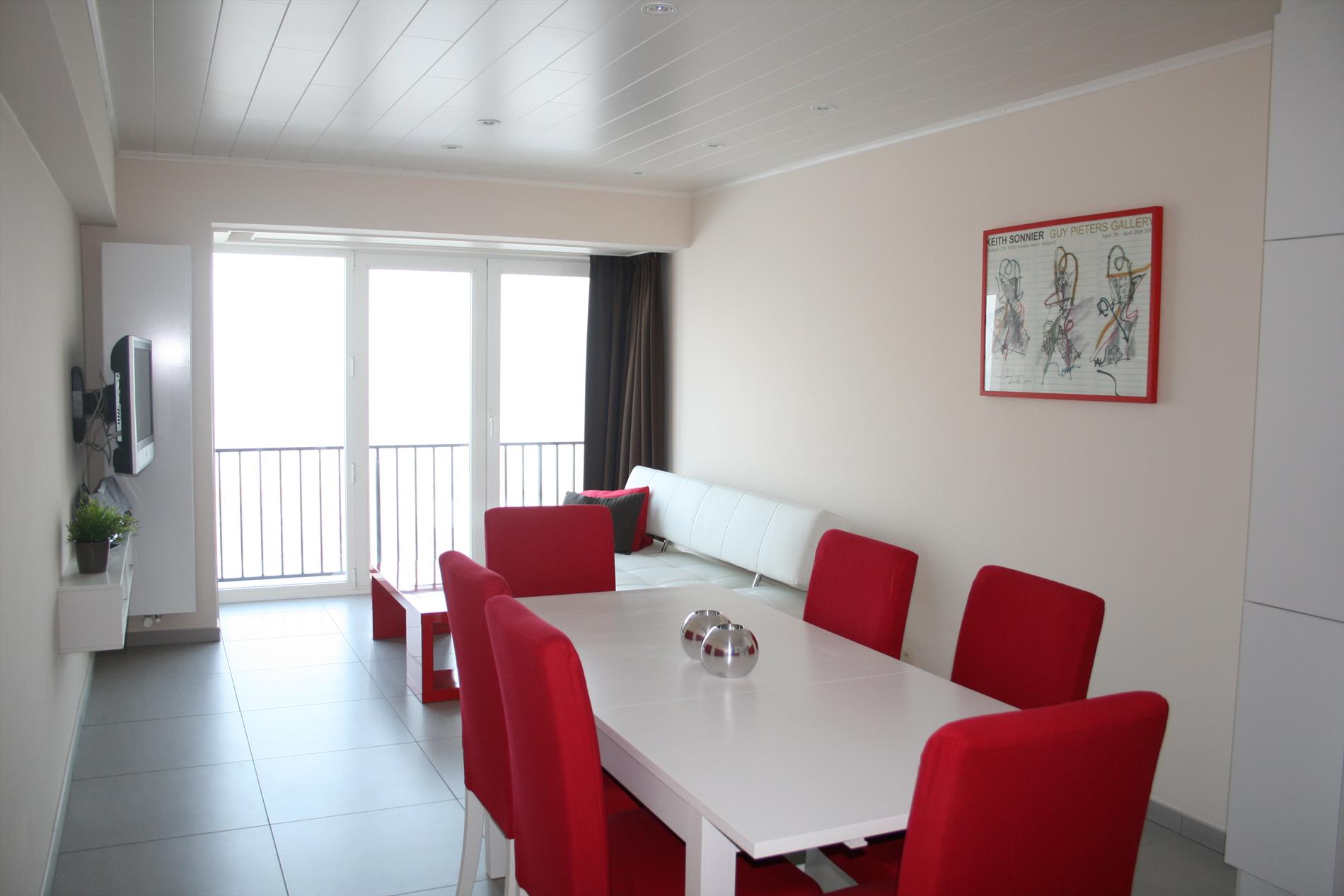 Leuk appartement gelegen op de vijfde verdieping. Gezellige woonkamer met open keuken. Badkamer met douche, apart toilet. Slaapkamer en slaaphoek. Huisdieren toegelaten.
