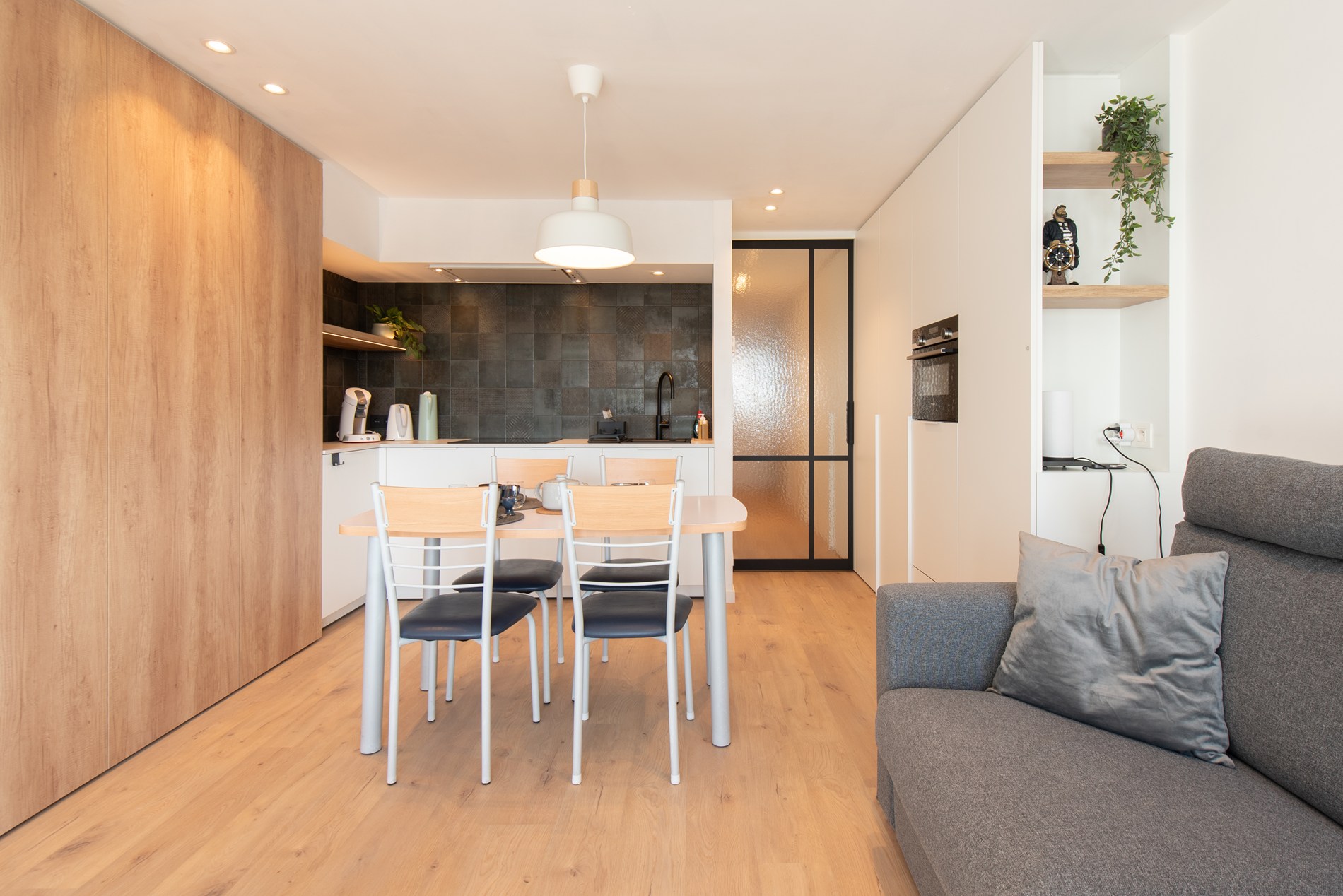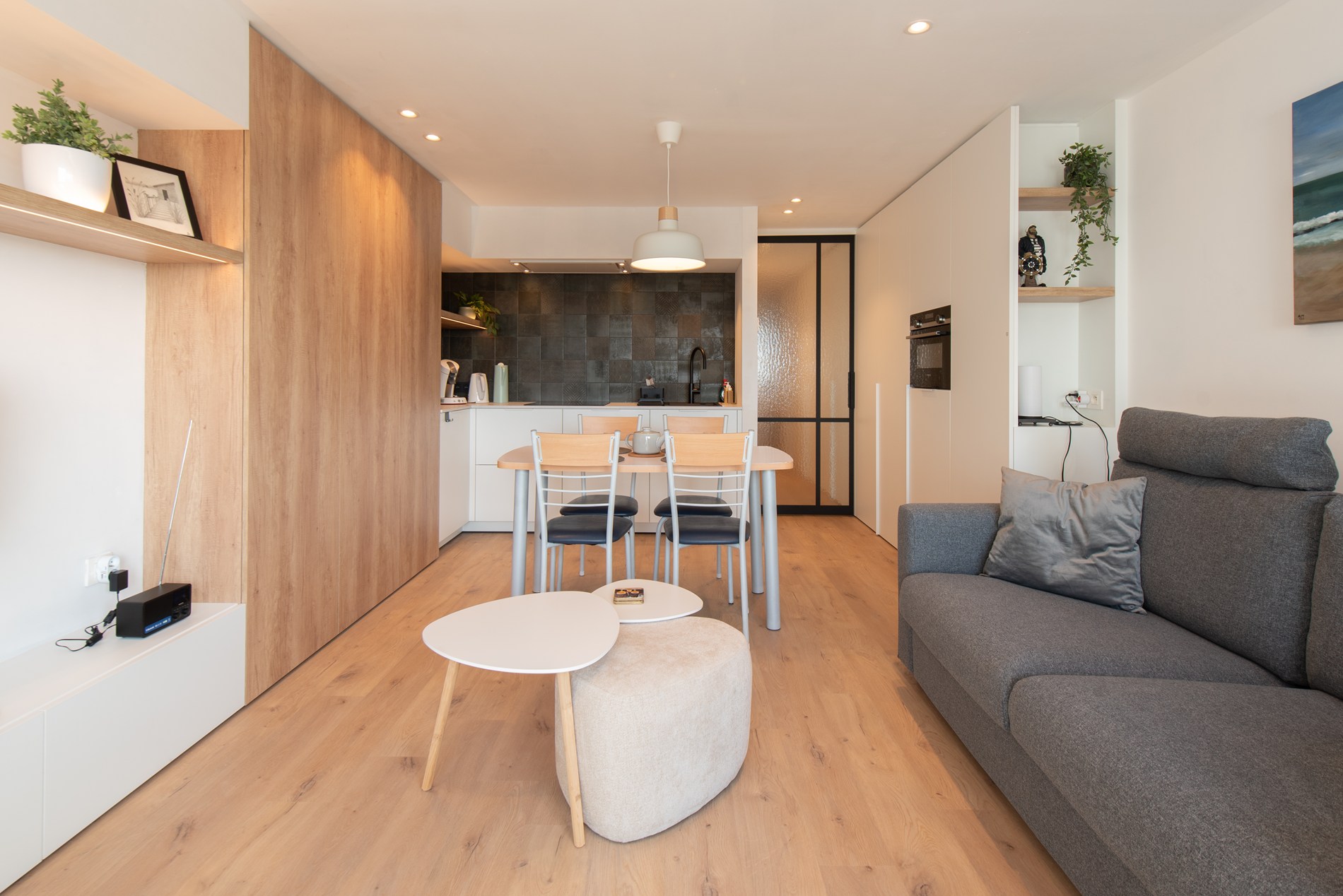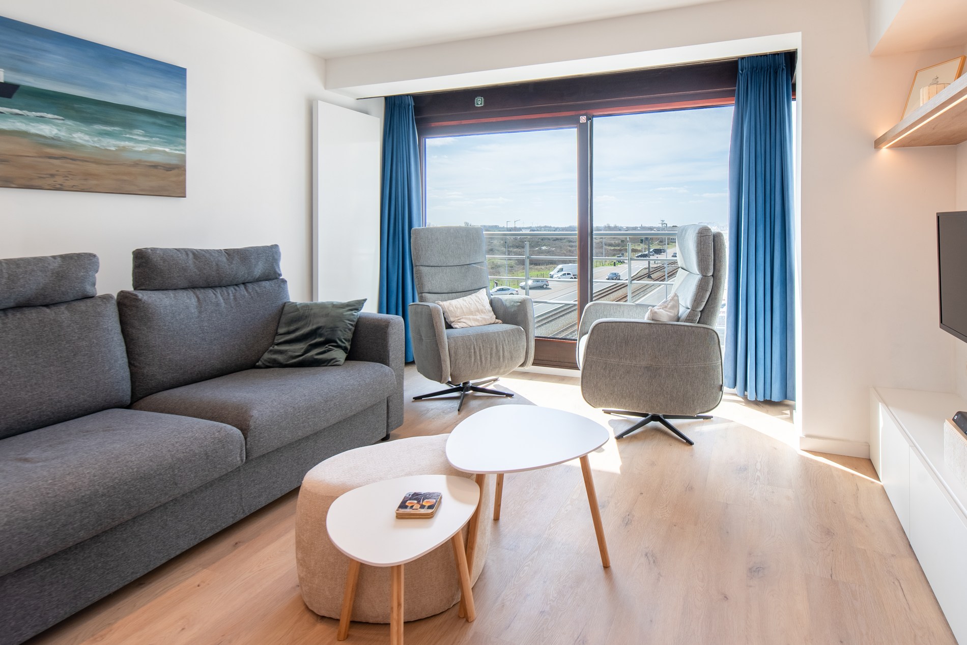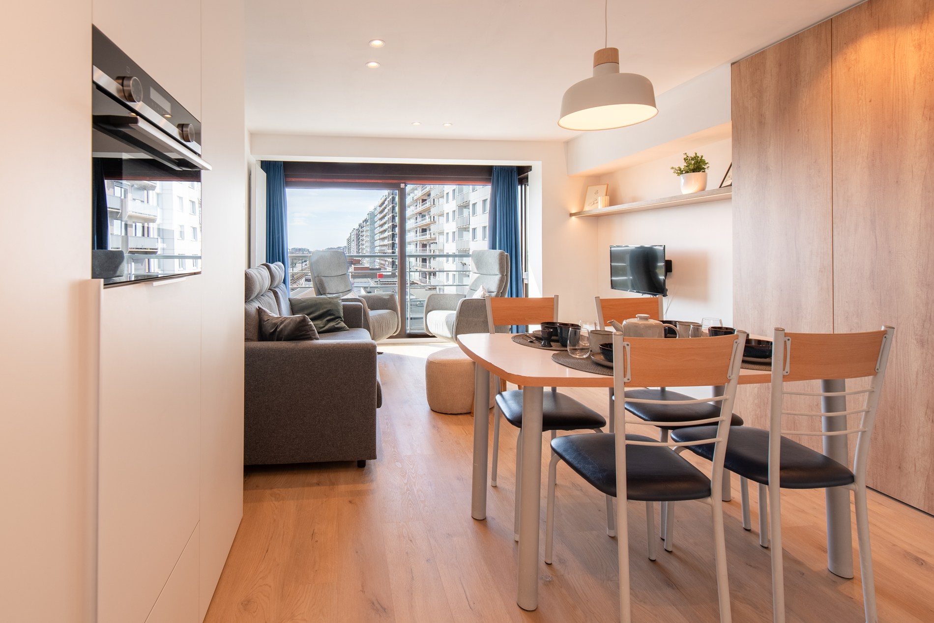 Gezellig appartement met zijdelings zicht op zee gelegen op de derde verdieping. Open keuken met alle modern comfort. Badkamer met inloopdouche en lavabo, apart toilet. Aparte slaapkamer met dubbel bed!
